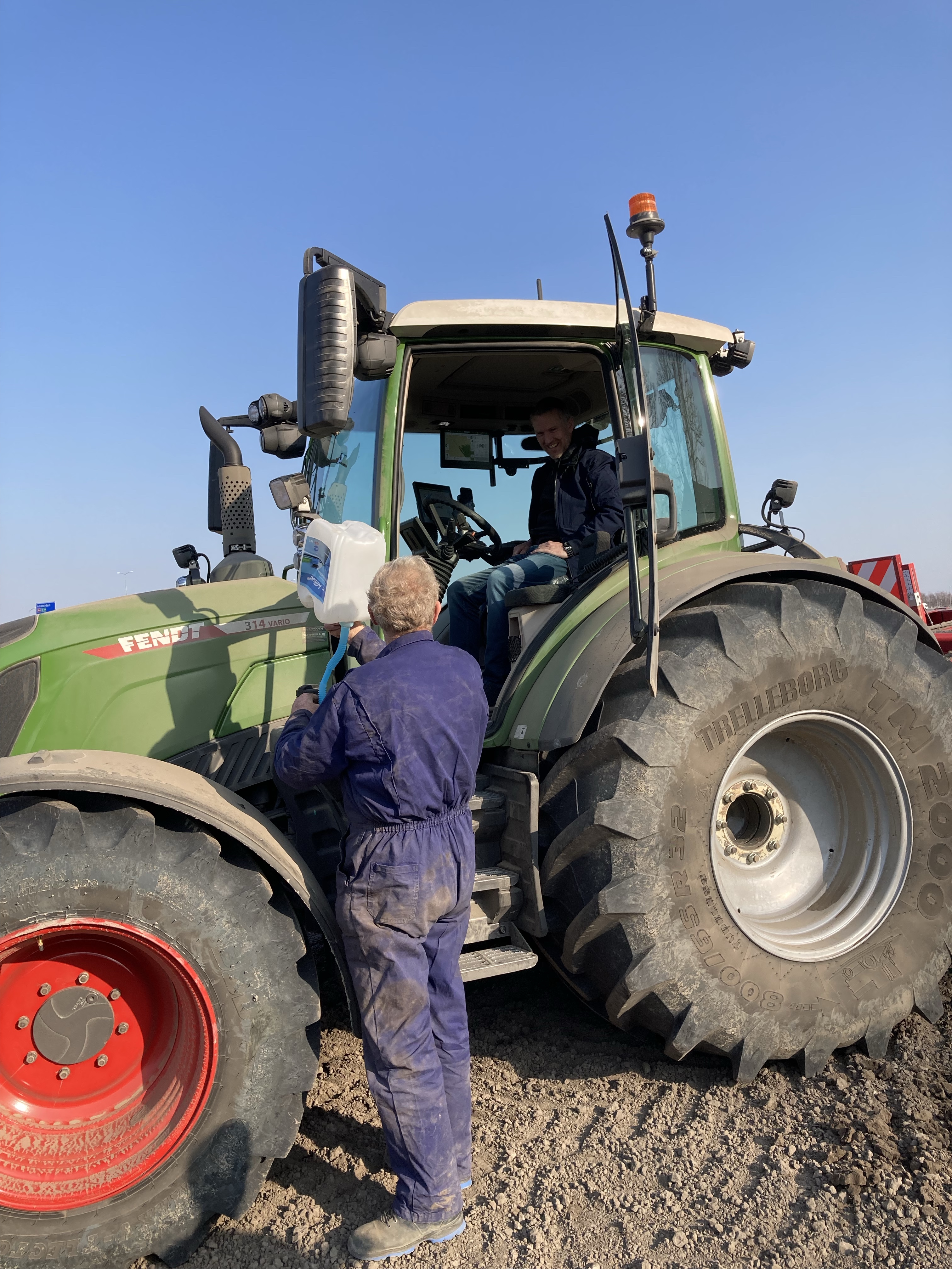 En na onze picknick brachten we nog ‘even’ een bezoekje aan Arjan zijn familie, om de hoek. Trekkers kijken, trekker rijden, bijkletsen buiten in het zonnetje, voor Arjan in de schaduw.