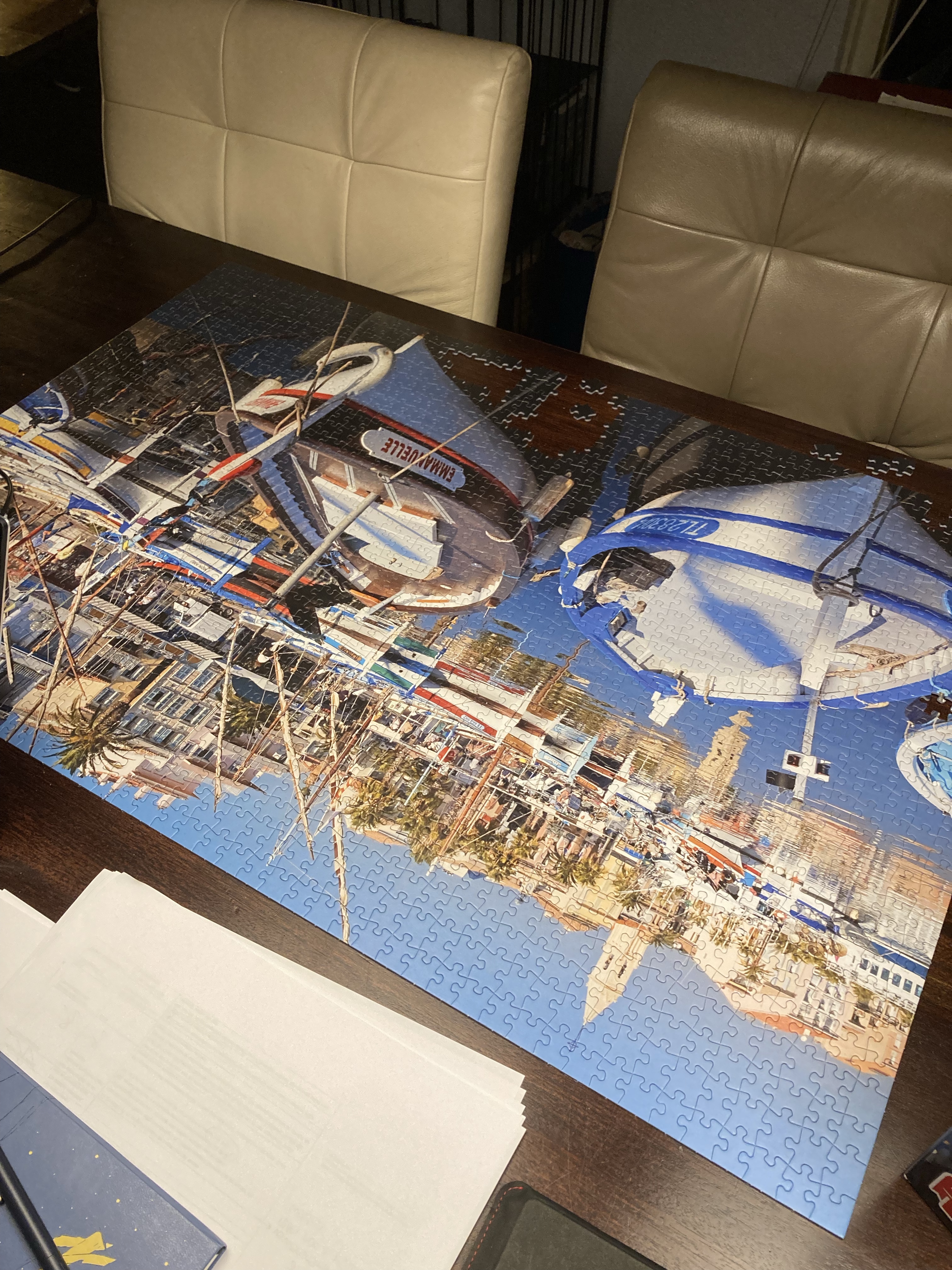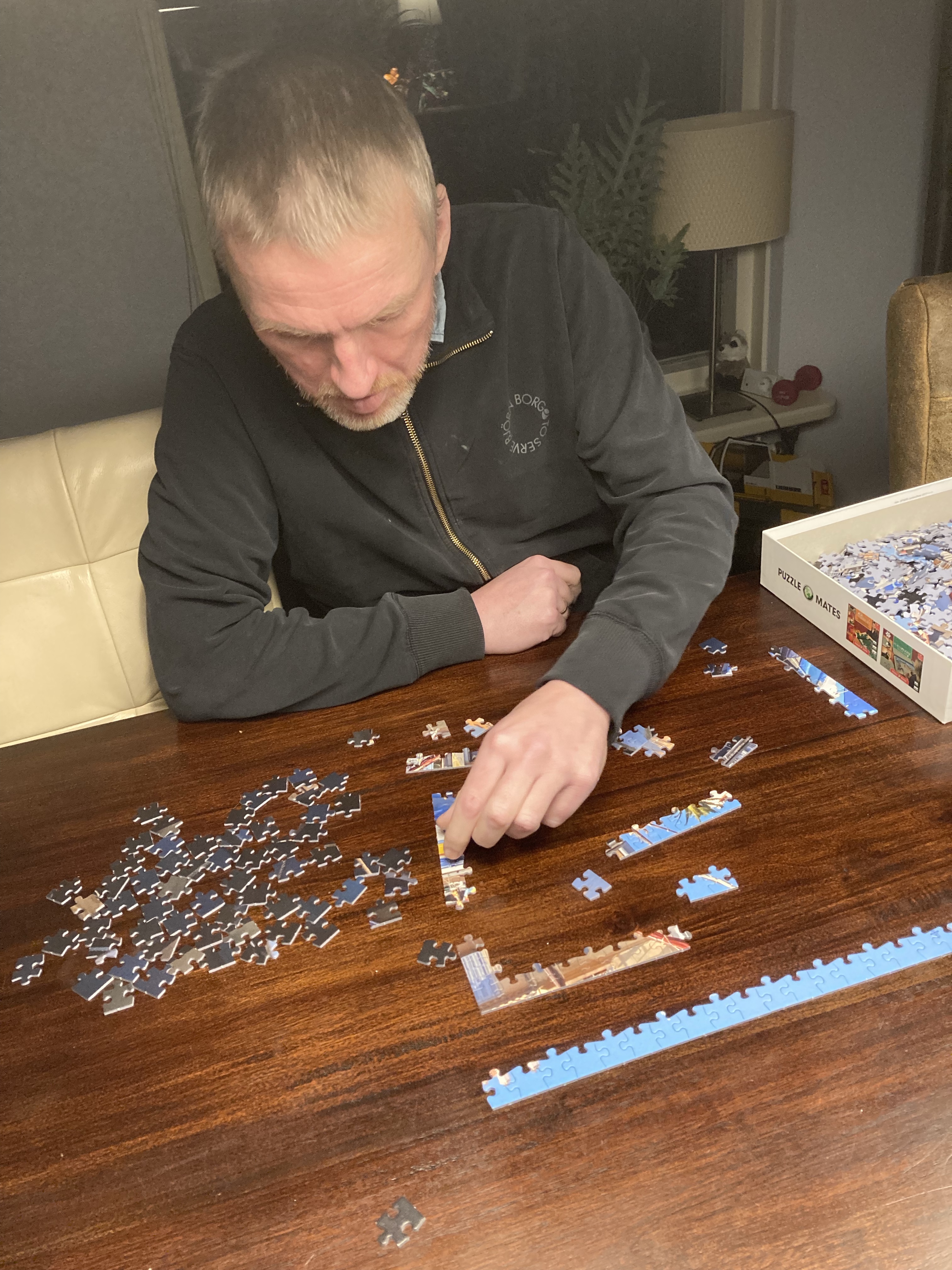 We zijn meer buiten, Arjan heeft zijn puzzelproject nog en afgekregen. 1500 stukjes met veel blauw. Ik mocht niet helpen deze keer. Nadat ik thuiskom van de radio dinsdagavond laat, zit Arjan nog te puzzelen. Goed teken. (tekst verder onder foto’s)