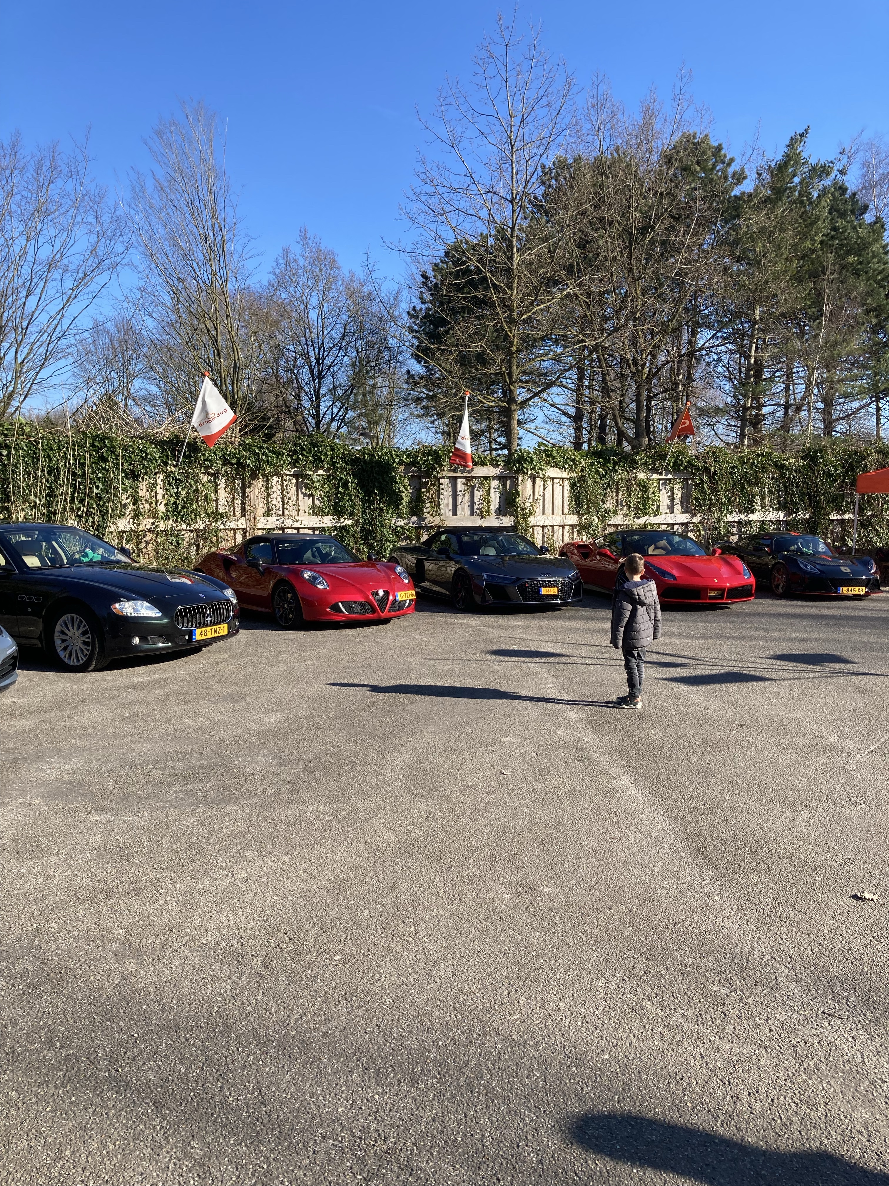 Dinsdag was het vroeg dag. Iets voor half 9 zaten we in het restaurant voor ons ontbijt. Om half 10 werden we verwelkomd door een erehaag van vrijwilligers van de Droomdag en stond er koffie/thee en gebak voor ons en maakten we kennis met onze vrijwilligster die dag. 21 gezinnen, waarvan een ouder kanker heeft. Ieder gezin een eigen vrijwilliger die letterlijk alles uit handen neemt en je meeneemt naar de verschillende activiteiten. We hoefden nergens over na te denken. Als de kinderen wat wilden drinken werd het geregeld. En voordat we het wisten stonden we bij de jongens hun grote droom: Snelle auto’s. Bij iedere auto werd een foto genomen en we hoopten natuurlijk dat we er heel even in mochten zitten. Het werd een autorit, waar we de pk’s hebben gevoeld! En we hebben de dijken bij Zeewolde en Nijkerk voorbij zien flitsen. Ja, ieder van ons in een eigen auto. OEF.