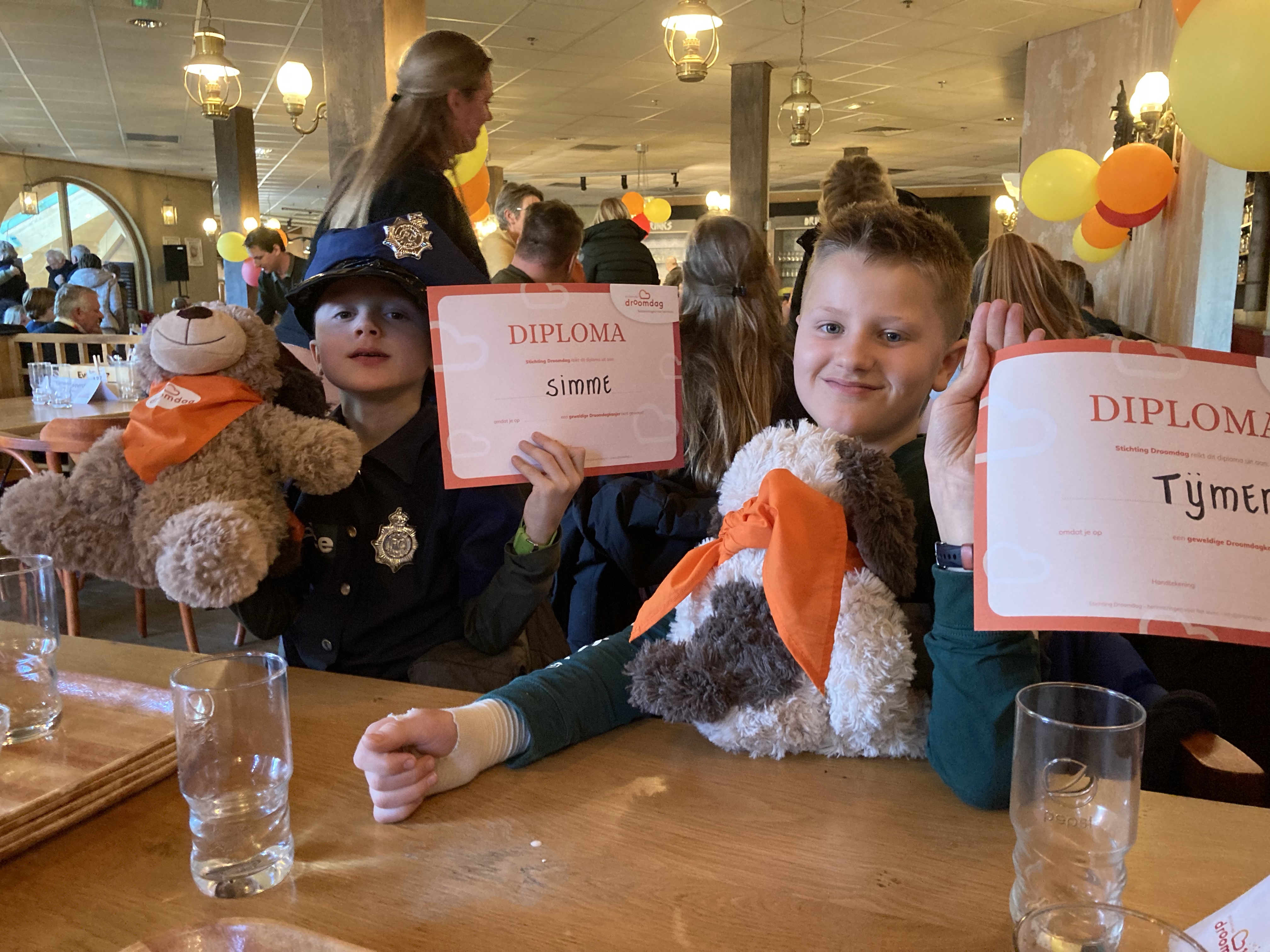 Hartstikke druk op de SEH. Maar er is tijd genomen om Tijmen goed te bekijken. Een CT-scan van zijn hoofd en voor de zekerheid ook maar röntgen van zijn pols, omdat die ook pijn deed. Samengevat: Goddank geen inwendige zwellingen in zijn hoofd, een flinke hersenschudding en een gekneusde pijnlijke pols en een blauwe schouder. De neuroloog gaf aan het echt rustig aan te doen met zijn hoofd, twee dagen geen scherm (gamen), geen trampolines, niet rennen…. Ai. Ik heb voorzichtig gevraagd hoe ze er over dacht om dan toch maar de Droomdag door te laten gaan. Ze kende de stichting en daarmee ook snel onze achtergrond. En gaf aan dat als Tijmen het zag zitten de volgende dag, we de Droomdag vooral moesten doen. Emotioneel belangrijk om ook zo’n dag met z’n allen te ervaren. Voor de jongens er echt uit. Veel paracetamol, echt zelf grenzen goed aangeven. En ja, dat betekent wat langer herstel. Maar doen!