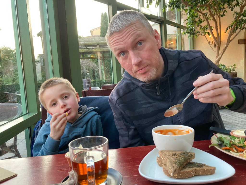En wat is het heerlijk om zo standaard, zo saai, zo stereotype de zondag te starten. Dat betekent dat de jongens lekker in hun vel zitten, ik me uitgerust voel en belangrijker: Arjan lekker op zijn gemak bij ons aan tafel zit en ook ‘zijn ding’ doet.